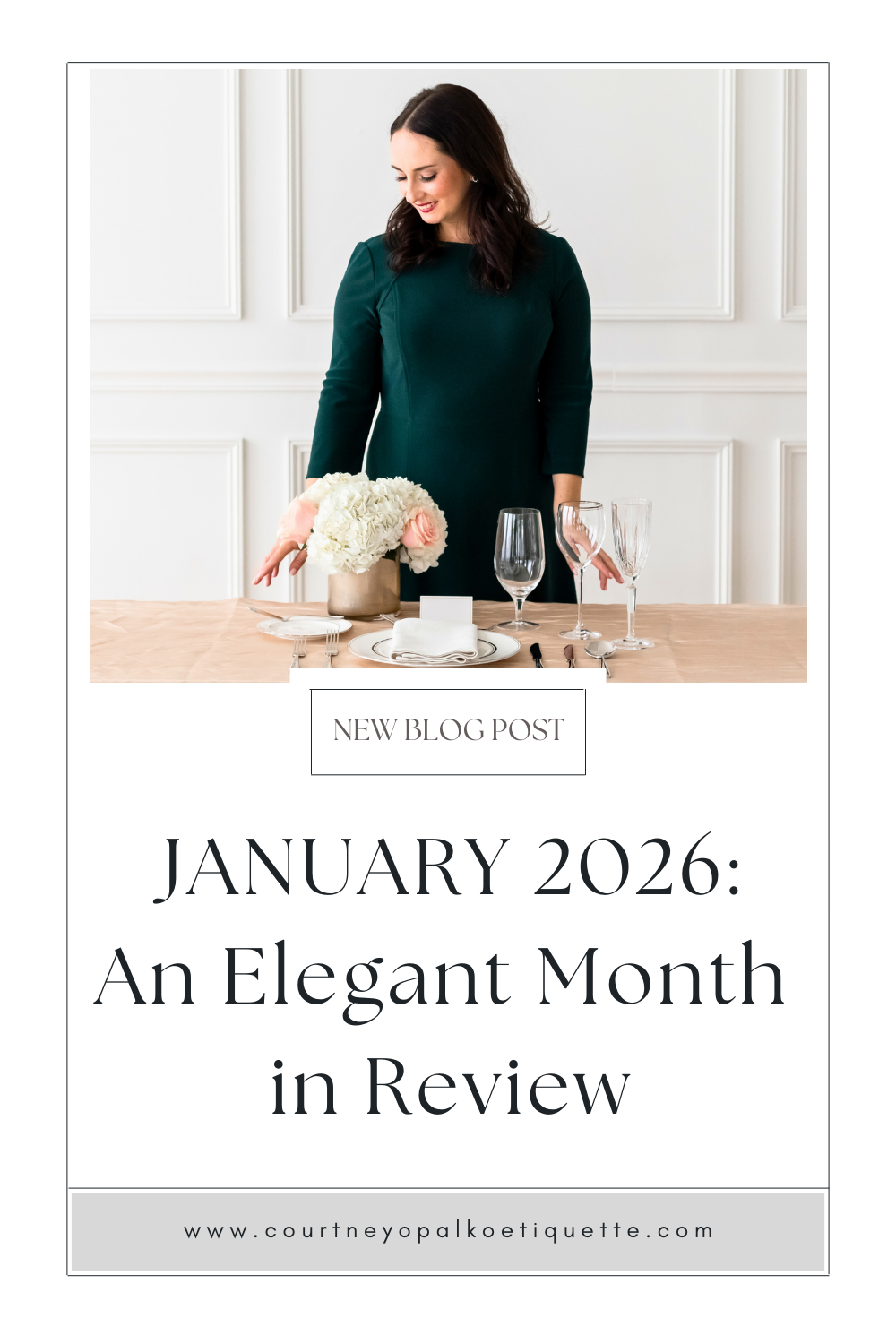 If the idea of crafting a more elegant life sounds interesting to you, I encourage you to revisit this space often. You may also be intrigued by The Courtney Opalko Etiquette Method for a More Elegant Life and my signature 9 step method to make it happen.