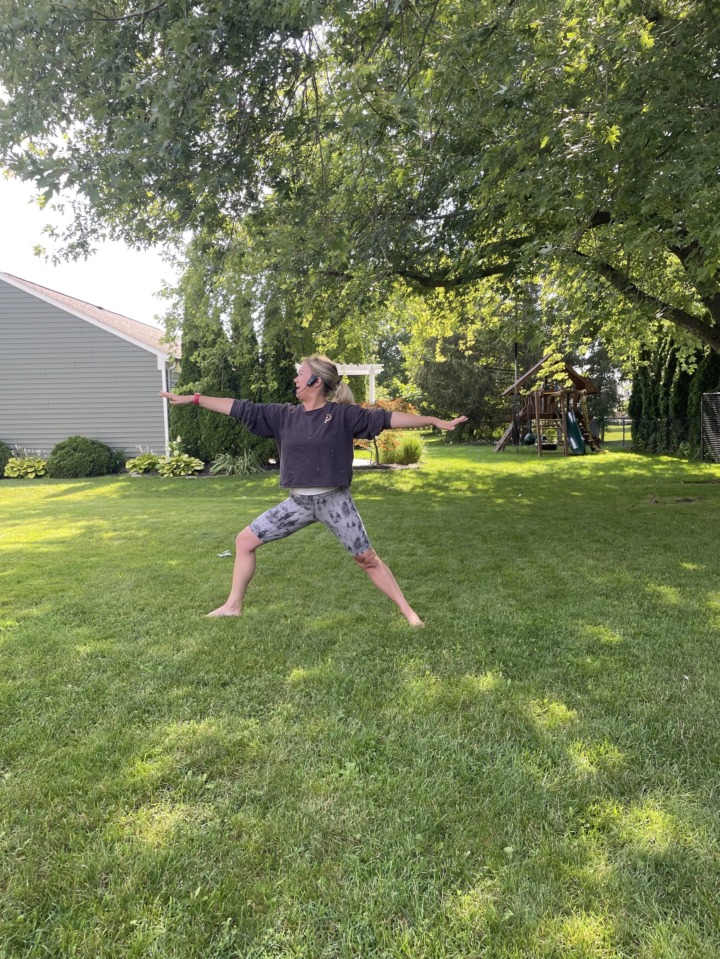 Timing: It can be helpful to observe your yard for a few days to find the ideal time of day to host a yoga class. You’ll want to take into account things like dew, sunshine/shade and temperature. Schedule your event early in the morning or late afternoon to take advantage of favorable temperatures and light. This timing also allows guests to incorporate the event into their day without stress.